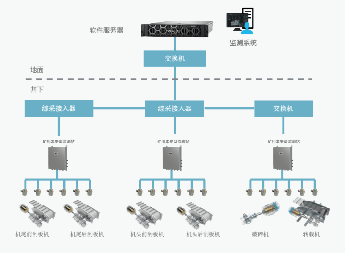 实现综采面刮板机、破碎机、转载机等设备的在线监测及故障诊断。